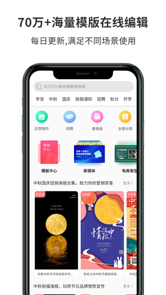 海量模版、正版授權(quán)、可在線編輯,支持一鍵制作手機(jī)海報(bào)、營(yíng)銷長(zhǎng)圖、電商banner、淘寶店鋪首頁(yè)、公眾號(hào)封面、名片等,滿足您不同場(chǎng)景的設(shè)計(jì)需求。