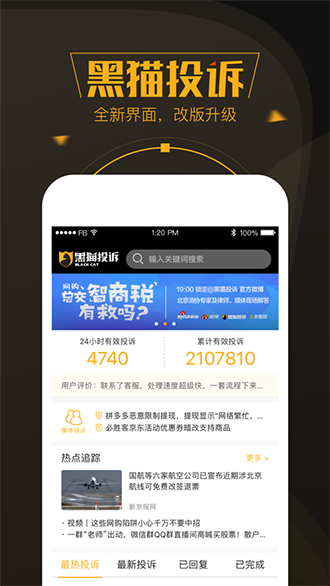 黑貓投訴平臺致力于為用戶解決消費糾紛的一站式服務(wù)平臺,全力維護消費者的權(quán)益。黑貓投訴APP以新浪微博為依托,打造切實可行的第三方投訴平臺,讓無良商家和某些欺詐消費現(xiàn)象快速曝光,讓普通人的維權(quán)更容易。