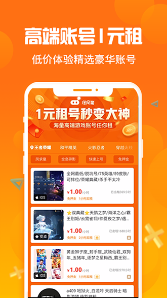 淘號(hào)豬APP,高端賬號(hào)最佳出租平臺(tái),最豐富的全品類游戲覆蓋,價(jià)格實(shí)惠更透明,超多大神級(jí)賬號(hào)免費(fèi)使用,覆蓋眾多資深玩家朋友青睞的熱門手游系列,賬號(hào)更多更高端更給力,支持免費(fèi)試用,用好了再選擇是否購買。