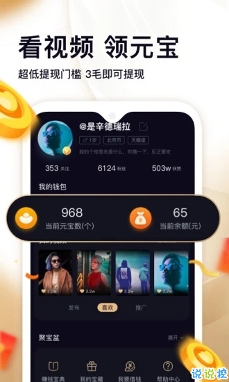 看視頻獲得金幣,金幣兌換現(xiàn)金提現(xiàn)到微信。