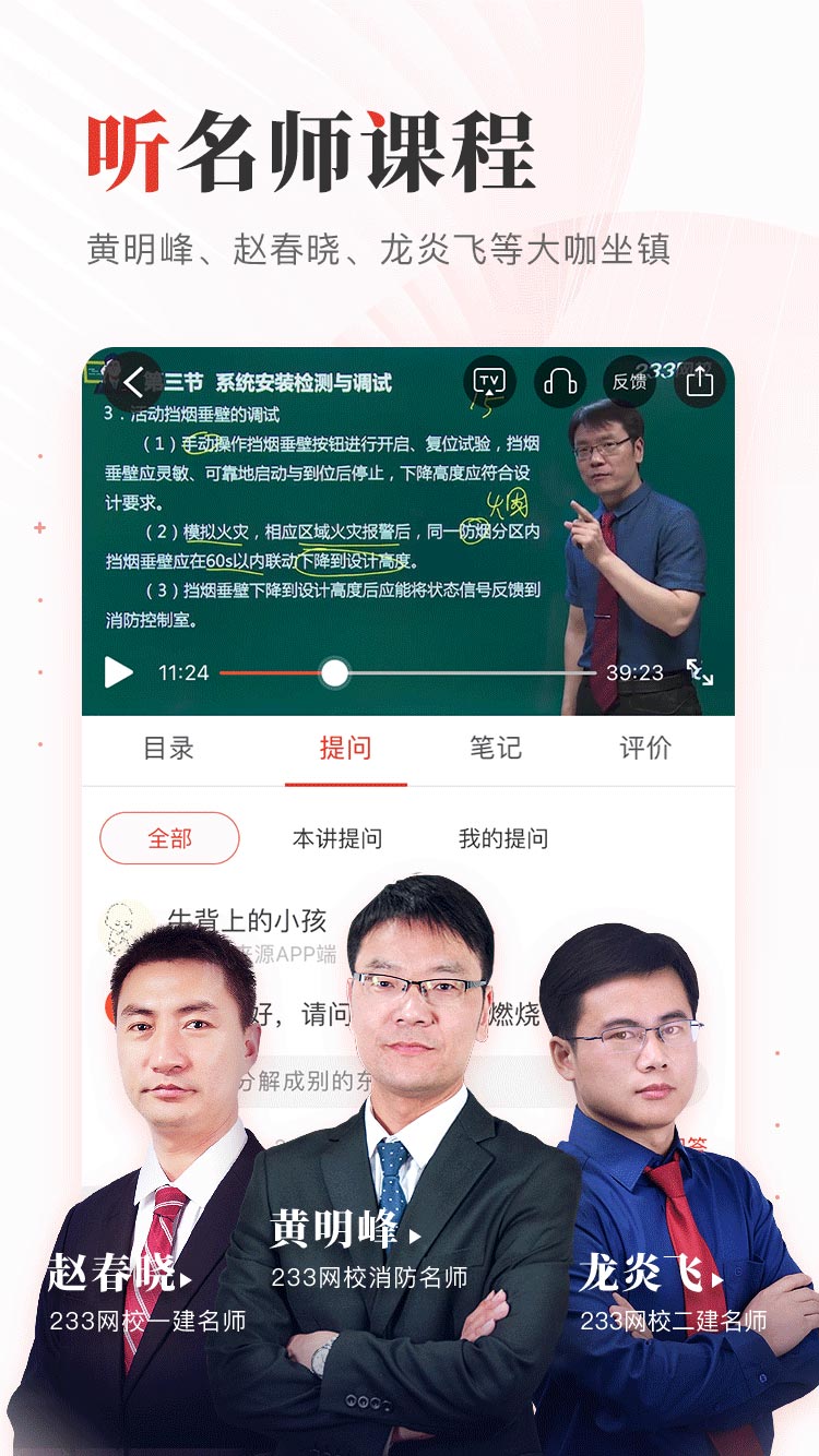 233網(wǎng)校APP 是由長沙二三三網(wǎng)絡(luò)科技有限公司出品的移動在線學(xué)習(xí)平臺,通過教,學(xué),練,問(在線課程,在線題庫,助教答疑,考試資訊)一站式服務(wù),解決學(xué)員考試問題;