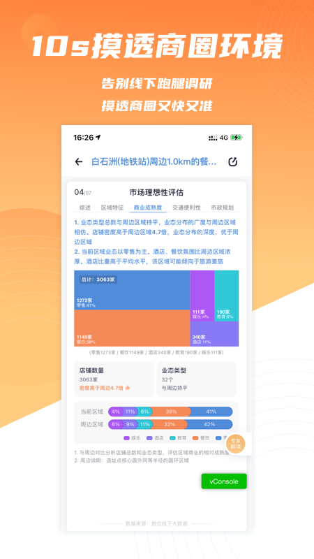 依靠多維度畫像定位消費者,追溯客流準(zhǔn)確來源,為新店選址提供大數(shù)據(jù)決策支持,讓你不盲目開店,上上參謀APP可助你選個好店面,做個好生意。