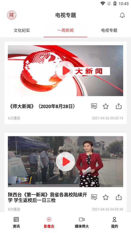 2、在個(gè)人主頁(yè)里面也可以添加各種新聞收藏,感興趣的校園資訊也可以分享出去;