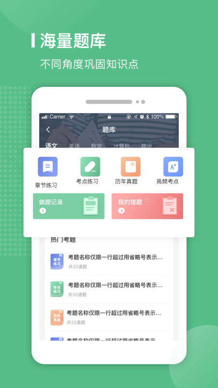 海量題庫,從不同角度詮釋教材大綱考試知識點(diǎn),全面提升應(yīng)試能力和技巧,力爭將不同考試題型及其變式一網(wǎng)打盡。