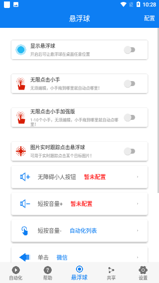 連點(diǎn)器,基于安卓提供的輔助功能,實(shí)現(xiàn)免root權(quán)限情況下模擬點(diǎn)擊手機(jī)屏幕的工具??梢耘康倪M(jìn)行自動(dòng)化測(cè)試,協(xié)助有障礙人員使用手機(jī),一鍵觸發(fā)手機(jī)連續(xù)點(diǎn)擊動(dòng)作。