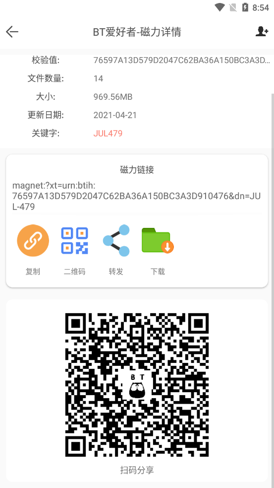 BT愛好者app,一款并不怎么綠色的磁力連接搜索工具。BT愛好者支持國內(nèi)外番號(hào)連接快速搜索,支持人名、番號(hào)、關(guān)鍵字等搜索,所有資源熱度排序,真實(shí)有效,支持連接復(fù)制、收藏、二維碼掃碼分享等功能,搭配磁力下載工具可實(shí)現(xiàn)無限速極速下載,需要的朋友下載體驗(yàn)吧。