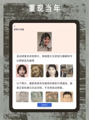 2、為您的照片修復(fù)殘破區(qū)域,修復(fù)人物五官、皮膚質(zhì)感,修復(fù)畫面層次感、清晰度,高度還原照片原本色彩;
