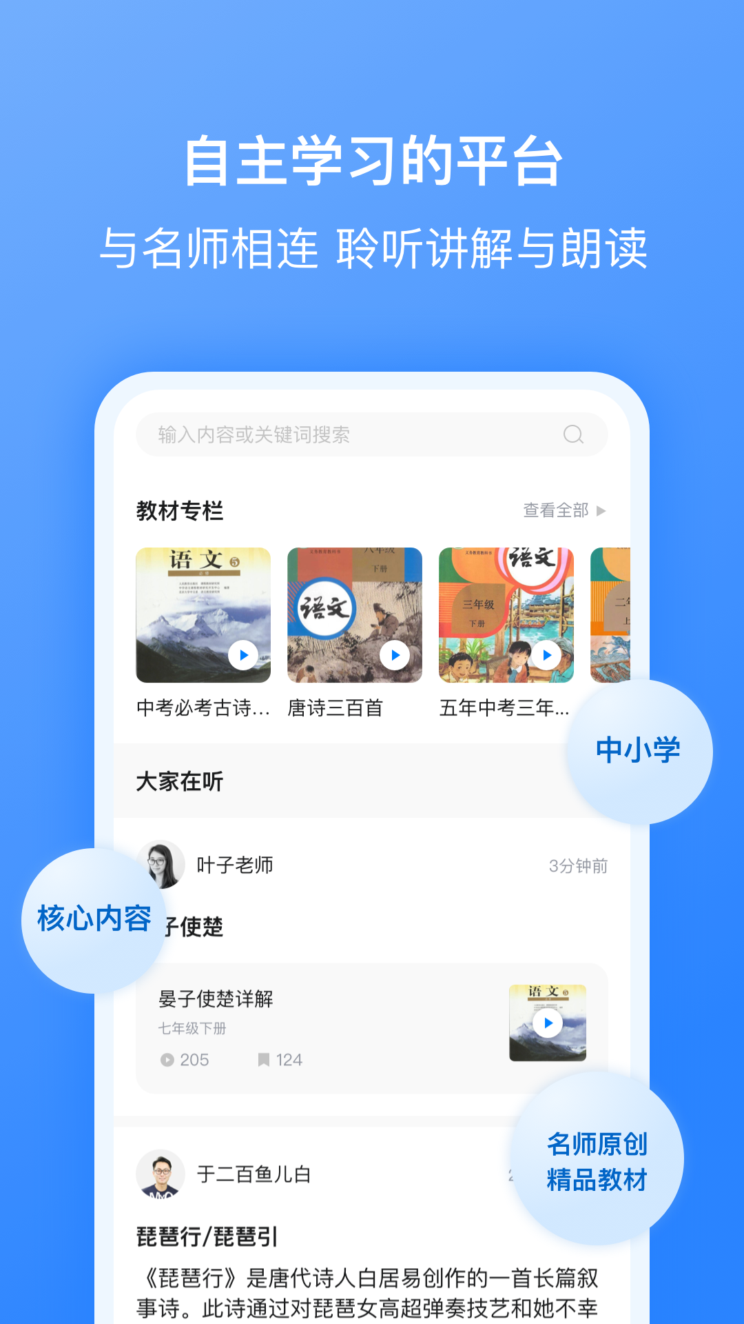 提供中國(guó)古詩(shī)、古詞、古文的聽寫內(nèi)容,讓孩子從小接受中國(guó)傳統(tǒng)文化熏陶、具備中國(guó)文化素養(yǎng)。