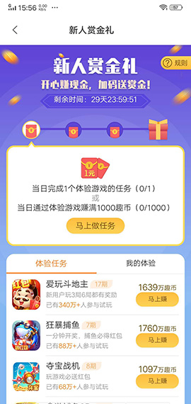 2、新人完成新手賞金禮即可獲得獎勵和1元提現(xiàn)權(quán)限