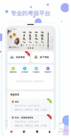 1、平臺(tái)可以在線報(bào)名考試,可以線上模擬考試,并且軟件還擁有全網(wǎng)社會(huì)藝術(shù)水平考級(jí)一手資料。