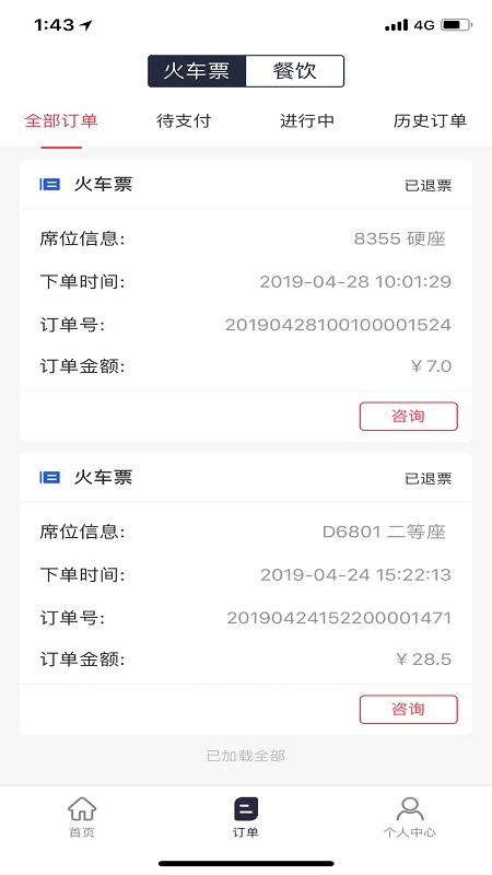 車(chē)票信息一手掌握,歷史訂單隨時(shí)查詢;