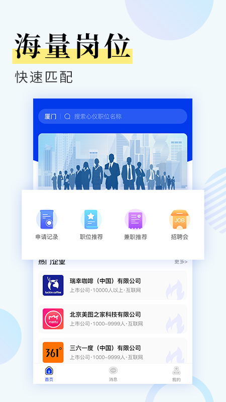 九州識聘app,一站式高效精準的求職招聘工具。軟件對接海量優(yōu)質(zhì)企業(yè)單位,一鍵即可輕松為求職者匹配對應(yīng)工作,線上上傳簡歷在線溝通,支持多職位求職管理,線上應(yīng)聘更加高效便捷,幫助找到對口好工作。