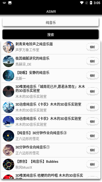 采用全局暗色調(diào),晚上使用更加護眼,擁有定時停止播放,睡眠模式,單首播放、音量均衡等貼心特性,貼合廣大ASMR同好的使用習慣,陪你舒適入眠。(由于服務器線路特性,有條件的用戶可以使用“網(wǎng)絡(luò)加速工具”提升緩沖、下載速度。)