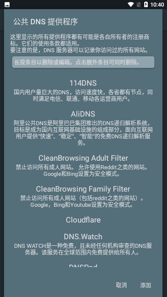 2.內(nèi)置集合了國內(nèi)外常用的dns配置地址,可根據(jù)你的需要自定義最快速的DNS解析地址。