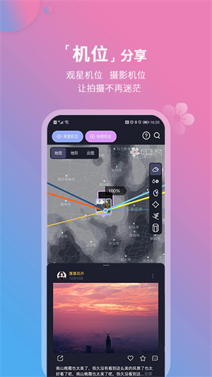 2.可以在這里欣賞到云海,晚霞,星空等特殊景觀,非常全面的天氣預報服務。