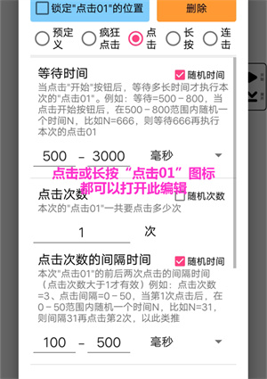 用戶可以設(shè)置隨機(jī)時(shí)間進(jìn)行點(diǎn)擊,可以點(diǎn)擊間隔和滑動(dòng)時(shí)間選擇;