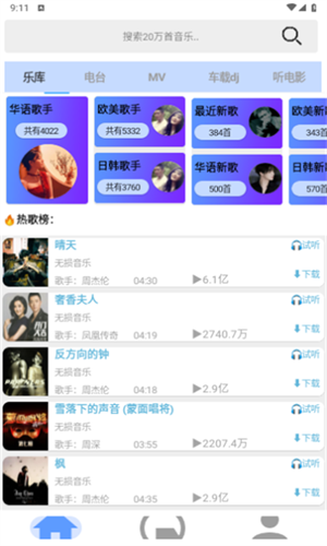 2、各種類型的歌曲都有,十分的全面化,輕松聽歌。