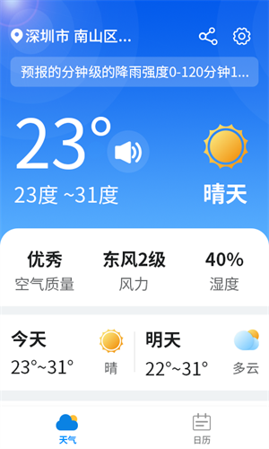 可精準(zhǔn)定位、實(shí)時(shí)監(jiān)測(cè)陰晴雨雪。提供15天天氣預(yù)報(bào),實(shí)時(shí)空氣質(zhì)量及空氣質(zhì)量等級(jí)預(yù)報(bào)。