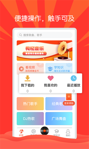 1、專為叔叔阿姨定制的音樂(lè)軟件,app字大清晰,操作簡(jiǎn)單;