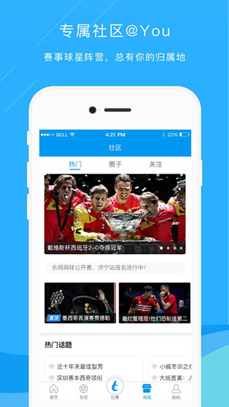 樂網(wǎng)網(wǎng)球是一款為網(wǎng)球愛好者打造的綜合應(yīng)用,這里有賽事、學(xué)校、資訊、比賽視頻和社區(qū)互動等內(nèi)容,網(wǎng)絡(luò)世界網(wǎng)壇熱點,最新網(wǎng)球公開賽賽事,比賽冠軍實時更新推送,社區(qū)互動分享網(wǎng)球,專業(yè)網(wǎng)球教學(xué),交友互動吐槽都有。