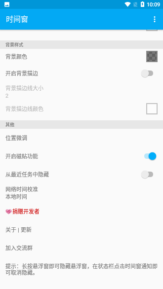 時間窗APP是一般非常小巧精致的時間懸浮窗軟件,主要的功能就是將時間懸浮在手機窗口,也就是不管你打開了什么,都能看到時間,特別適合一些全屏的軟件,可以清楚的看到時間,在一些需要秒殺的場合比較適用,而且用戶可以自由設(shè)置時間顯示的樣式、字體的大小等,還能設(shè)置顯示的顏色,基本上不占內(nèi)存,需要的可以下載使用。