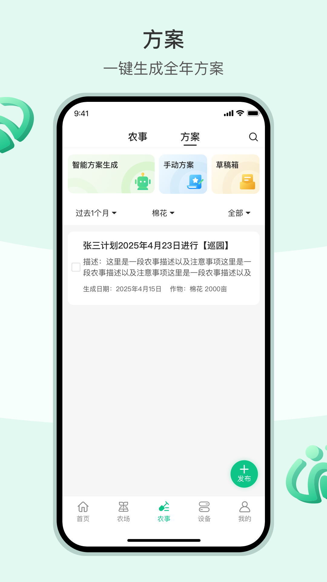 AI农是一款基于AI(人工智能)大数据计算与服务于一体的农业行业应用。依托C-life平台和大数据建模及计算服务能力,利用庞大的农业大数据库、土壤数据库和光谱数据库,提供基于云平台+智能化设备+手机APP/H5的农业智能监测系统和智能化产品解决方案,助力传统农业走向大数据精准农业。