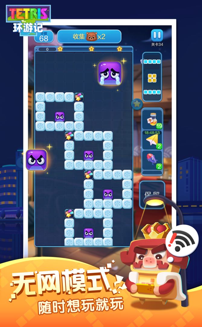 俄羅斯方塊環(huán)游記游戲畫風(fēng)鮮艷可愛,人物形象呆萌生動,選擇你的游戲挑戰(zhàn)關(guān)卡和模式,先易后難,開始逐步變化,滑動操作無疑減少了游戲的難度,操作上更加方便