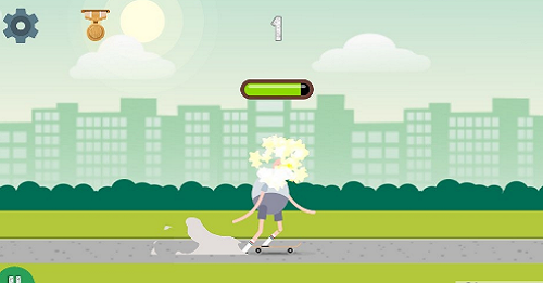 2.去幫助老爺爺進行滑板的冒險,點擊你的屏幕不斷的加速,躲避那些危險的障礙物;