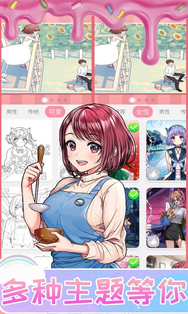 1.可以挑選喜歡的人物進(jìn)行創(chuàng)作,每個(gè)人物都會為大家提供很大的畫畫樂趣。