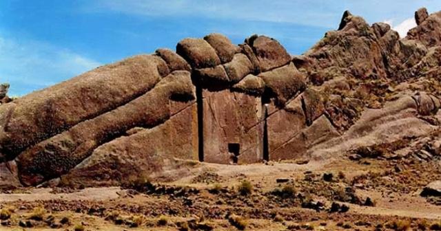 這個問題也全是腦洞,在南美秘魯南部哈有馬卡山脈就也有一個傳說中的“眾神之門”,在一個巨大巖壁上有一塊方形的平門面,而在平面的下方有一個“小門”,小門的中間有一個凹陷。