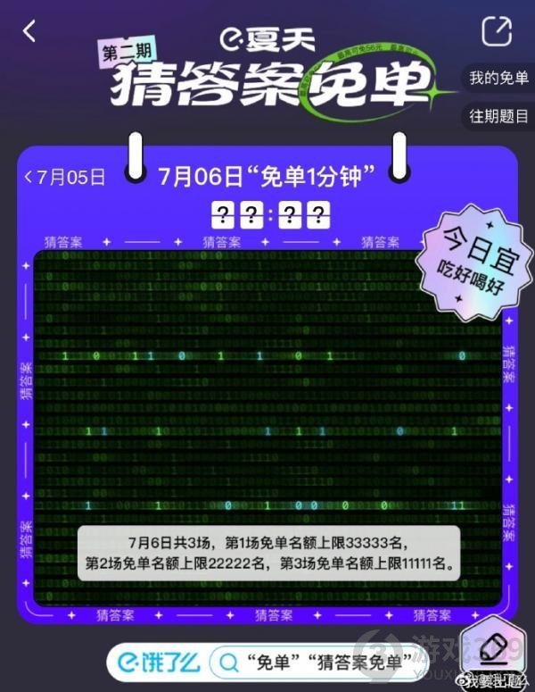 7月6日共3場,總計免單66666單(第一場33333,第二場22222,第三場11111)