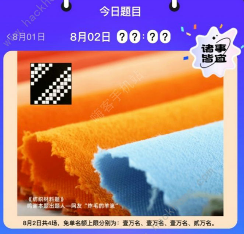 一共有4場(chǎng),名額有5W呢。這里給大家?guī)?lái)8月2日餓了么免單時(shí)間預(yù)測(cè):