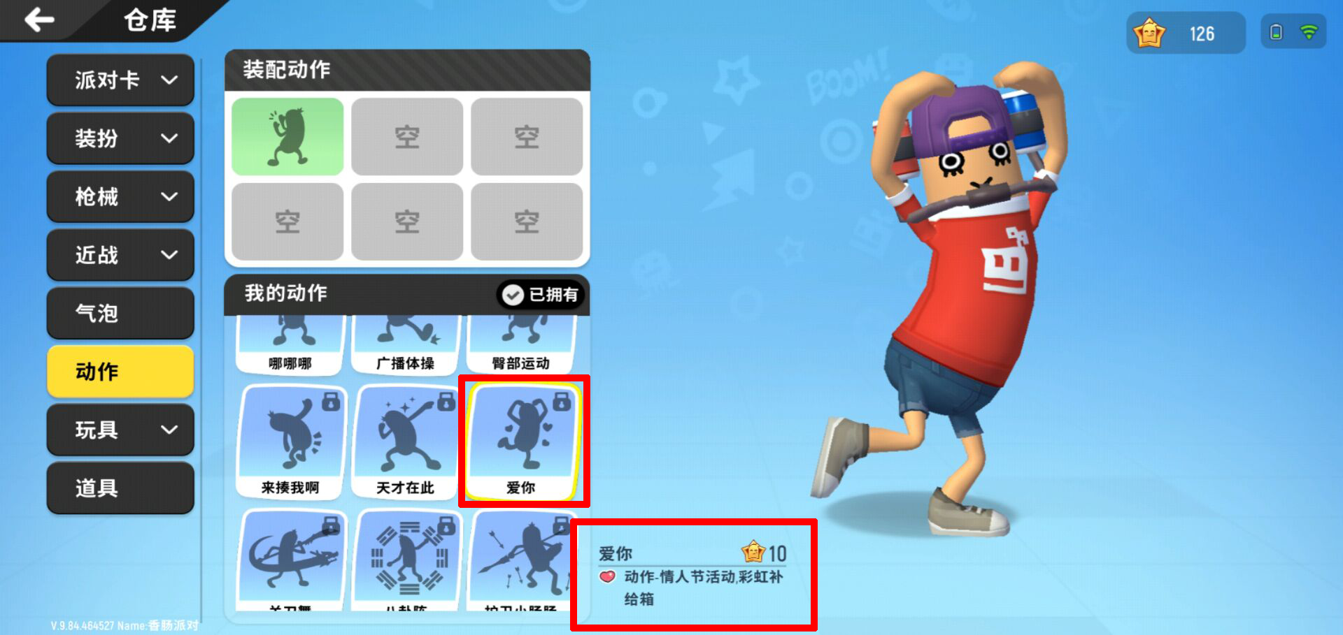 相信很多玩家在玩游戲的時候都看到有人做了一些奇奇怪怪的動作,還有愛心動作。自己也想和小伙伴做個愛心,比比心啥的,香腸派對中有三個愛心動作,第一種就是左比心和右比心,獲取的方式是之前的情人節(jié)活動,彩虹補給箱獲取,現在已經不能再獲取了,所以可能有一些遺憾,只能等下一次情人節(jié)活動了。