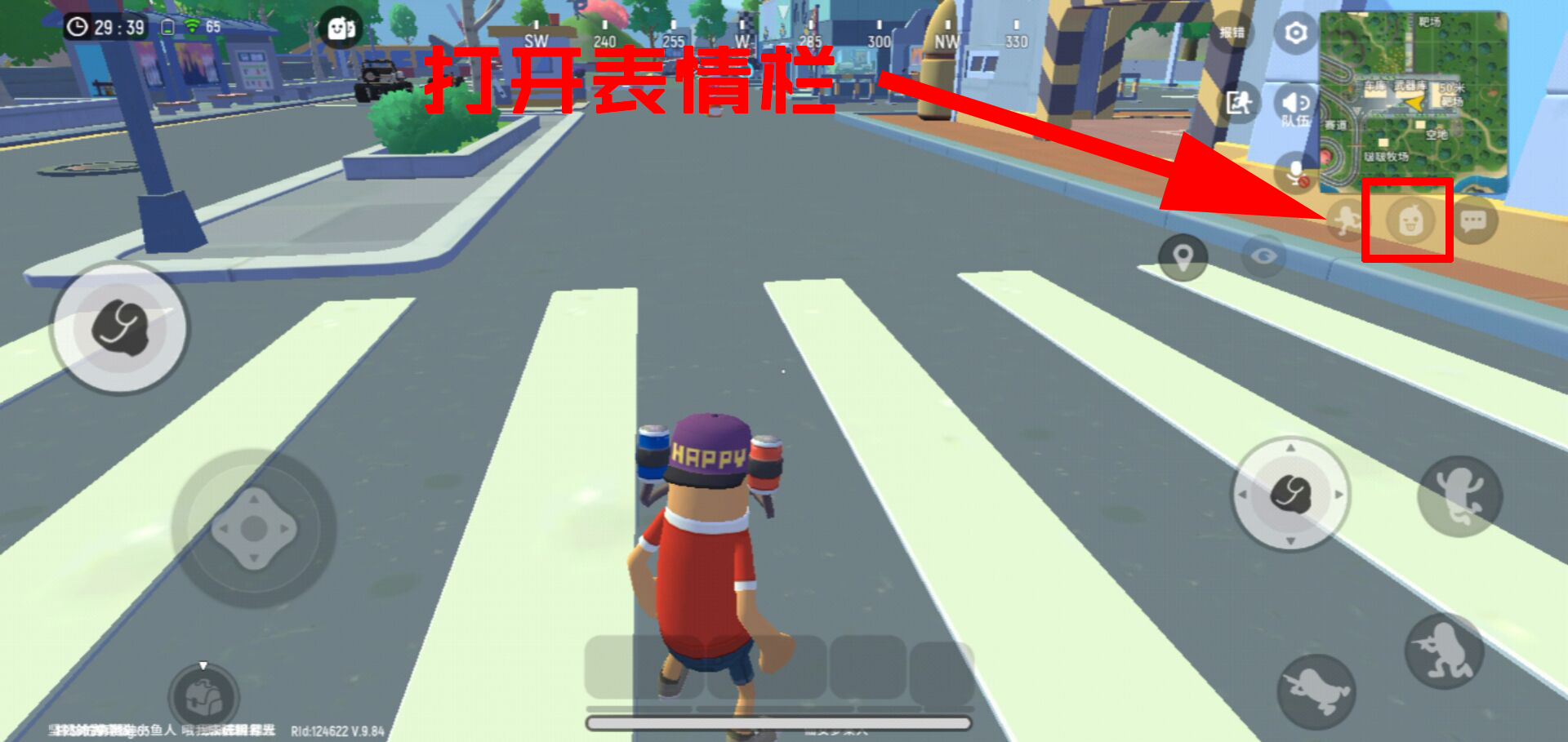保存好了之后,進入游戲,如圖所示,點擊表情的按鈕,就能打開動作欄了,動作欄中會存在之前保存的一些表情。