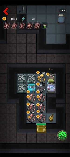 4.第二關由宿舍阿姨鎮(zhèn)守,如果房間道具沒有造滿,她是可以遁地的,她會回到地圖中間回血,可以趁這個時候,造炮塔攻擊。