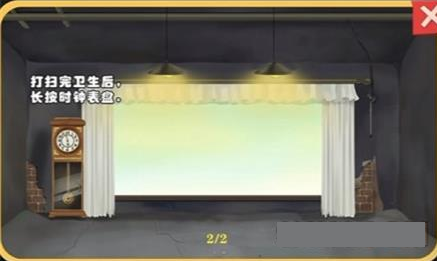 4、將屋子打掃干凈之后,長按時鐘表盤,會出現(xiàn)山清水秀的畫面,即可成功通關(guān)