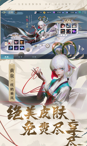 物靈繪卷緩緩展開,蹁躚紙鶴與溫文綠竹緣定三生,玩家收集卷靈即可解鎖畫中奇緣,限定史詩皮膚、紙鶴回城特效、海量游戲資源等你免費兌換。