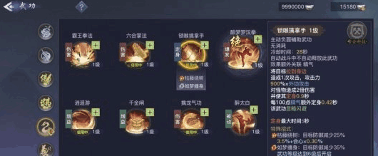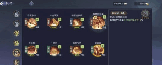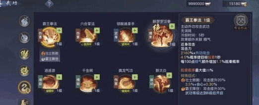 技能介紹:被動技能,每損失1%血量,就提升一定百分比外功攻擊。