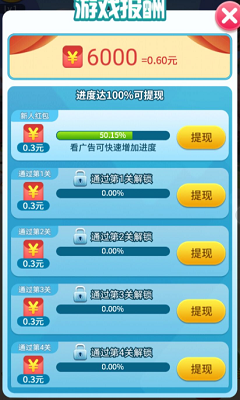 2、通過闖關(guān)的模式,只要進(jìn)行關(guān)卡挑戰(zhàn),就可以進(jìn)行關(guān)卡解鎖,完成之后就可以進(jìn)行提現(xiàn)。