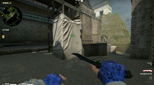 CT方要求噴漆位置是T陣營側上方,其實是指CT出生從B區(qū)向側門外和中路走的位置,同樣注意左上角地圖位置提示。