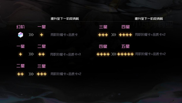 升階顧名思義提升角色階級(jí),可以很明顯的提升角色基礎(chǔ)屬性與專(zhuān)屬卡牌的能力。