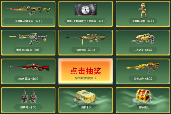 3、如果過玩家在獎池中抽中"隨機永久道具機會",則下一次抽獎一定會抽中本次活動中的永久道具其中之一;唯一性道具游戲內(nèi)無法重新到賬(如超級護目鏡);