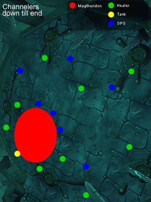 在瑪瑟里頓獲得自由,同時已經(jīng)干掉2-3個導魔者的這個時刻,是整場戰(zhàn)斗的決定性時刻。每一個導魔者死掉后,其他的導魔者將獲得一個增加他們傷害30%和加快施法速度30%的Buff。打斷施法變得困難,但是在“語言詛咒”的幫助下還是有可能打斷的。從第一和第二導魔者閑下來的治療者要去幫助治療現(xiàn)在正在扛剩下導魔者的坦克們。