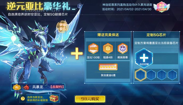 1、98元逆元亞比豪華禮開(kāi)啟購(gòu)買(mǎi),限購(gòu)1次;達(dá)到100級(jí)的小奧拉即可購(gòu)買(mǎi),購(gòu)買(mǎi)逆元亞比豪華禮將計(jì)入累充。