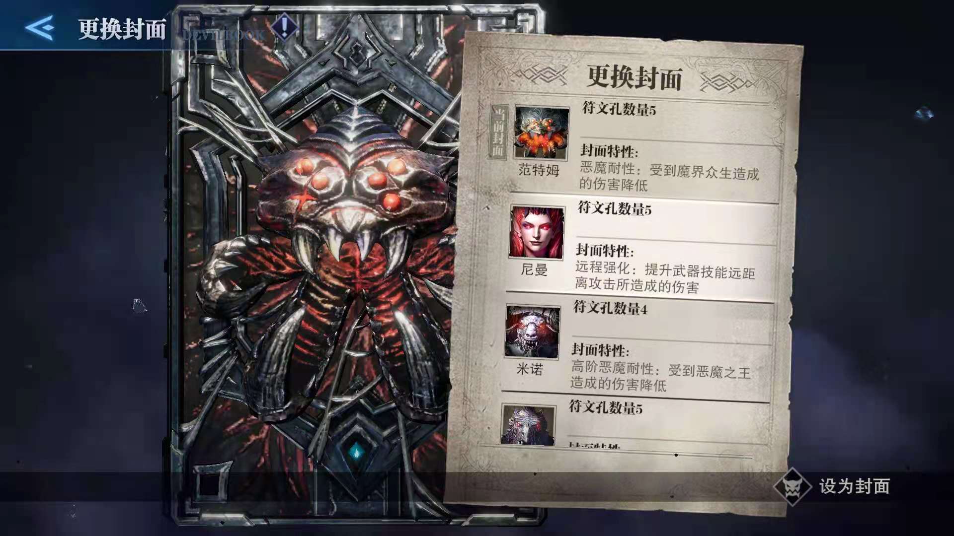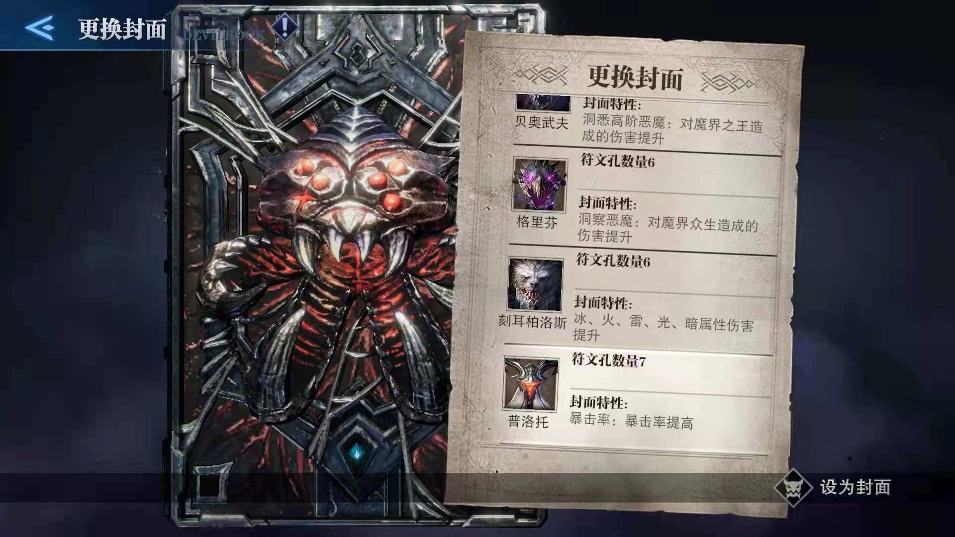 推薦普洛托或尼曼的封面,普洛托因為它加成暴擊率,而且可以自帶7個孔。尼曼雖然只有5個孔,但是加成遠(yuǎn)程傷害。配上版本T0火箭炮,基本隨便打SSS。魔人符文則沒用了,畢竟蕾蒂不會變身魔人。