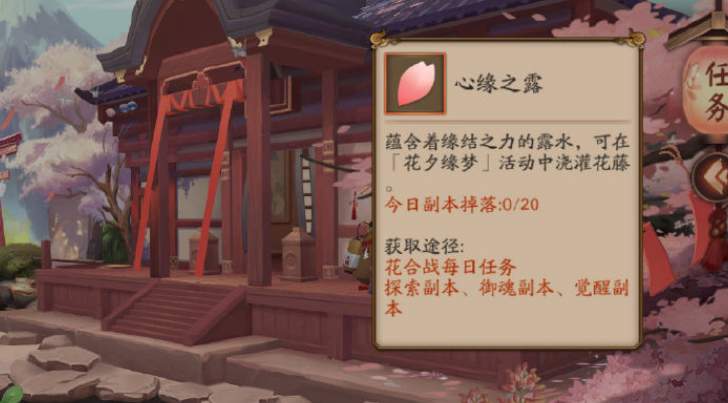 2、動(dòng)前挑戰(zhàn)并通關(guān)探索、御魂、覺醒副本的時(shí)候會(huì)獲得「心緣之露」,副本掉落每日最多獲取20個(gè)。