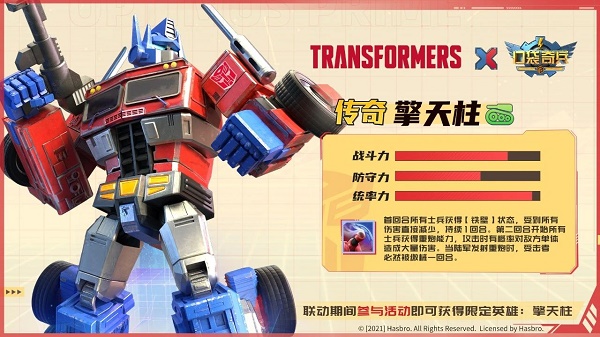 3、總而言之,想要獲得并且領(lǐng)取擎天柱就去參加本次的聯(lián)動(dòng)活動(dòng),不然活動(dòng)結(jié)束后就無(wú)法在獲得了。