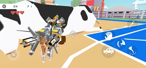 這時我們就找到一個藍(lán)球場,你會發(fā)現(xiàn)里面有有兩頭牛,我們騎上那頭大的,然后再下來,最后點那個抓的按鍵。