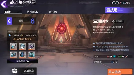 我們在游戲里玩家等級(jí)達(dá)到23級(jí)后,就會(huì)開啟挑戰(zhàn)副本的深淵,我們要進(jìn)入深淵挑戰(zhàn)的話,需要消耗一定的「深淵之核」,每次的挑戰(zhàn)消耗5點(diǎn)的疲勞值,在完成挑戰(zhàn)后,有概率獲得伊甸品質(zhì)的絕品裝備;
