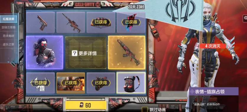 除了常規(guī)的主題名片、載具、背包、動(dòng)作、降落傘皮膚噴漆等道具之外,值得入手的就是人物女爵以及CR56-紅魔浪潮皮膚了,武器皮膚的特效十分炫酷。